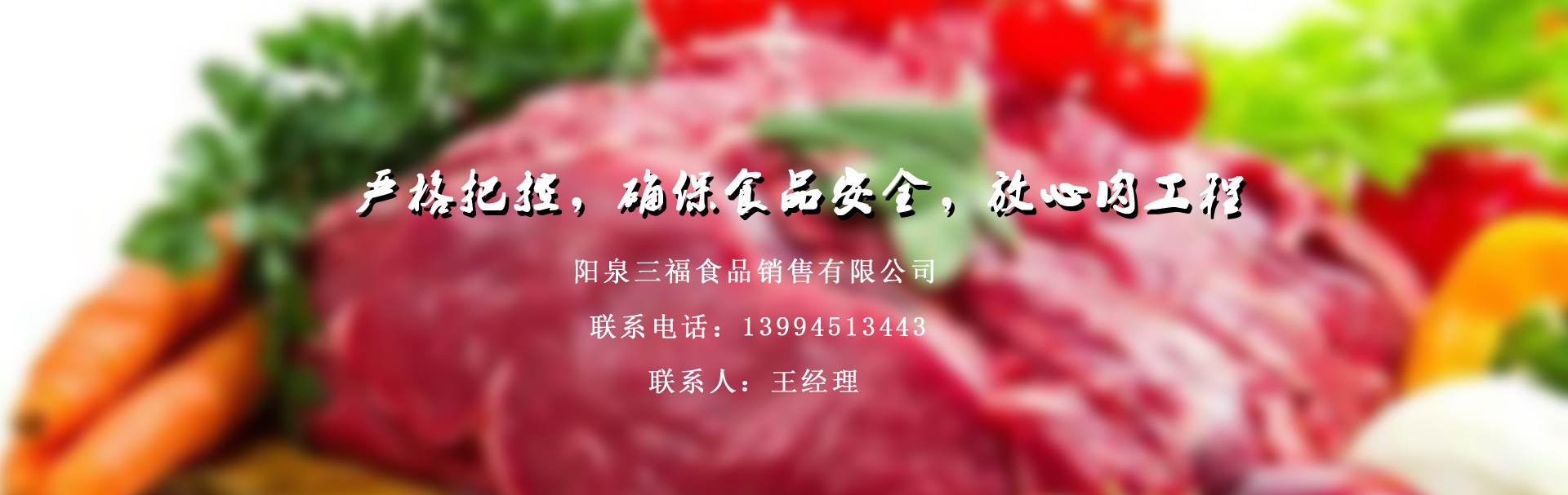 陽泉三福食品銷售有限公司成立于二零零六年九月,位于陽泉市城區桃南中路28號,資質為一般納稅人,是政府批準的合法具有外調肉類的單位之一。在2012年獲得中國人民銀行頒發的AAA機構信用代碼證。現主要提供以下供貨渠道: 1、 冷鮮肉類的批發 2、 凍貨...